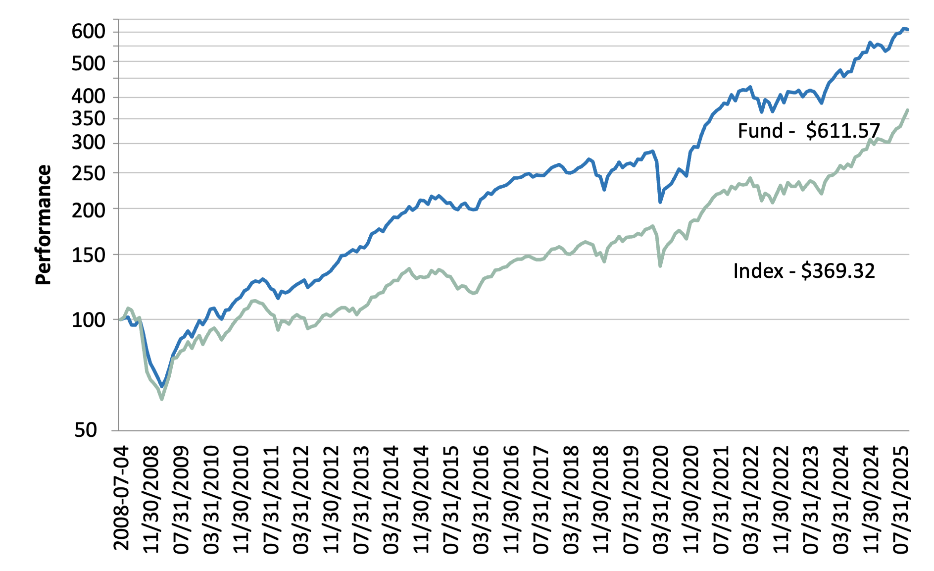 The total cumulative return of the Fund versus the market, since Fund inception.